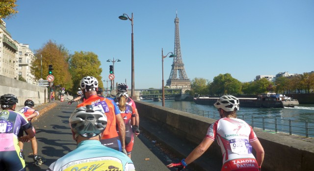 All of our competitors described the race as an attractive because of the location, but the prce for the beautiful position along the Seine river was high - the track was very demanding and was totally inappropriate for skating. There were long sections across the cobblestones, over the gravel, the competitors twice turned almost "on the spot", the narrowing of the width was just for one skater only, the pedestrians and the tourists were on the track, etc ... Maybe organizers haven't counted with such abundant participation , however organizationally the race was not successfully finished - the issue of the starting numbers in a very small space, almost at the start line where the competitors were literally passing through each other, half an hour long lines before the entrance to the designated area of the race /because of the security measures, everyone's backpack had to be checked/, another half an hour long lines for the starting number, also for the storage of things as well, 4 toilets for almost 2900 competitors .... Hanka said: "I was really curious about this race, but I must say that I was really disappointed, during the race there were things that I have never experienced before, such as the pavement cubes were on the road, where the track was leading, so the competitors, who were at the edge, jumped up on the sidewalk where was an asphalt and rode down the hill. The rest of us that were in the middle had to ride on the cubes which were slowing us down... Or, in the S-curve around the island, some of them shortened the track over that island ... For me this track was horror, furthermore, the fall where a Frenchman guy was overtaking me in the narrow part. We both could fit on the track easily, but he simply pushed me in my shoulder and knocked me on a curb. I have finished the race only because of Robert. When you know that you will lose the race not only ourselves, but for your partner as well, you just do your best... but I had to fight the pain a lot *. However, the azure skies and the start just under the Eiffel to offset this terrible experience. "Zdeněk adds that for the next year the organizers have a lot to improve.