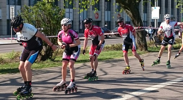 Za nami XIII Cracovia Maraton na Rolkach. W tym roku, w przeciwieństwie do lat poprzednich, pogoda dopisała. Było słonecznie, ciepło, aczkolwiek bardzo wietrznie. Nie przeszkodziło to jednak blisko trzystu osobom zameldować się na starcie na krakowskich Błoniach i wziąć udział w wyścigu. Do przejechania było 12 okrążeni. Walka na trasie była zacięta i nie obyło się bez kilku upadków. Po jednym z nich nasza Martyna postanowiła wycofać się z wyścigu. Przez pierwsze kilka okrążeni paru zawodników Silesii(Janusz, Alek, Mateusz i Wojtek) utrzymywało się w pierwszej grupie razem z najlepszymi zawodnikami w kraju. Jednak tempo narzucone przez czołówkę musiało odcisnąć piętno i odpadaliśmy po kolei...Alek, Wojtek i Mateusz. Najdłużej utrzymał się Janusz, lecz przez błąd taktyczny i on musiał uznać wyższość naszej czołówki sprinterów.