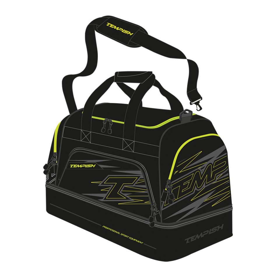 UNIWERSALNA TORBA SPORTOWA Z ODDZIELNĄ PRZESTRZENIĄ NA BUTY I UBRANIA. PODSTAWOWA PRZESTRZEŃ MA RUCHOMĄ PRZEGRODĘ DO DALSZEJ SEPARACJI. TRZY MNIEJSZE KIESZENIE NA BOKACH DOSTĘPNE ODDZIELNIE, POSIADA PASEK NA RAMIĘ.