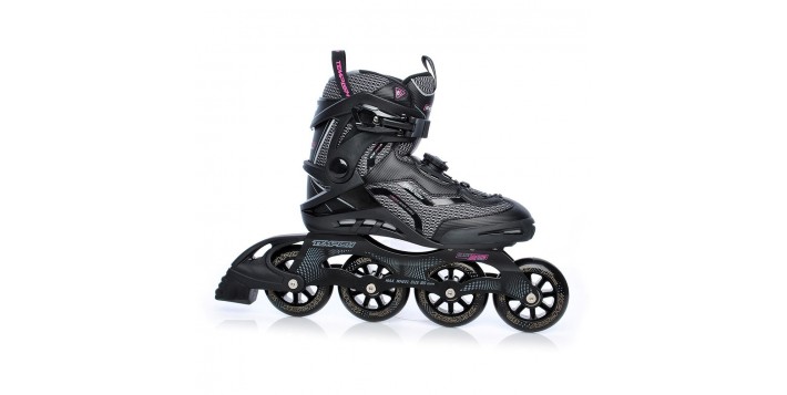 Black Shadow 90 Lady to nowy model rolek TEMPISH, wykorzystujący nowoczesne materiały i technologie. Jako całość oferuje użytkownikom - w rolkach wysoki komfort jazdy, bezpieczną jazdę i pewną ruchomość z wystarczającą swobodą indywidualnej regulacji obuwia i rolki odpowiednio do stylu jazdy, indywidualnego kształtu stopy i lokalnych warunków. Rolki Black Shadow 90 lady są przeznaczone dla doświadczonych i zaawansowanych osób, aby wytrzymać średnie i wysokie obciążenia sportowe.