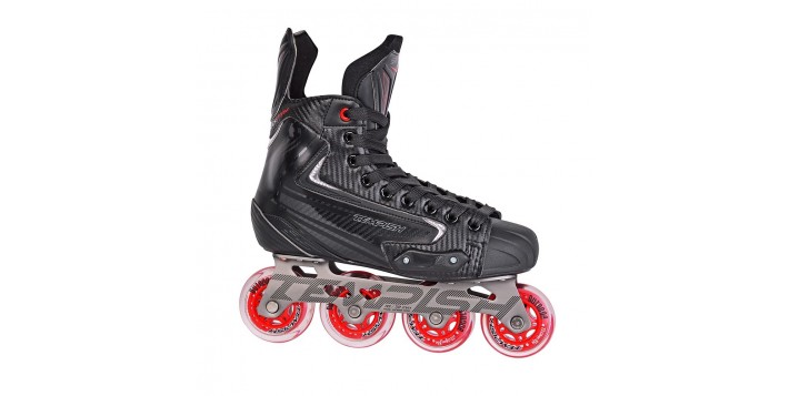 TRITON BLACK STORM to najwyższy model rolek hokejowych w kolekcji skate TEMPISH. Rolki są przeznaczone dla średniozaawansowanych, zaawansowanych i doświadczonych graczy. Ten model jest przeznaczony głównie do rozgrywek na betonie lub asfalcie. Wewnętrzna wkładka ma kształt anatomiczny. Nowe podwozie MESH Ultra wykonane ze specjalnego stopu AL o grubości 2,8 mm. W płozie stosowane są jednostronne osie kół z blokadą przeciwskrętną przymocowaną do płozy. Śruba koła jest przykręcona w połowie w płozy. Płoza jest przymocowana do buta stalowymi nitami i pod piętą za pomocą 1 pary miedzianych nitów. But jest wyposażony w wymienny ochraniacz podbicia na zewnątrz i wewnątrz. Zestaw zapasowy tych ochraniaczy znajduje się w opakowaniu. Zewnętrzny materiał buta wykonany jest z twardego PU o wewnętrznej strukturze "CARBON" dla lepszej odporności na uszkodzenia mechaniczne. Anatomicznie wyprofilowany język jest centralnie wzmocniony tworzywem sztucznym. Rolki wyposażone są w koła TEMPISH RADICAL o twardości 82A. koła z serii RADICAL są bardzo twarde, mają wysoką odporność na zużycie, niski opór toczenia i są bardzo stabilne. Dlaczego rolki TEMPISH TRITON BLACK STORM przeznaczone są głównie do hokeja na asfalcie i betonie? 1. koła RADICAL 2. Zewnętrzne wymienne ochraniacze 3. Odporny materiał zewnętrzny PU 4. Wzmocniona rama TEMPISH MESH ULTRA